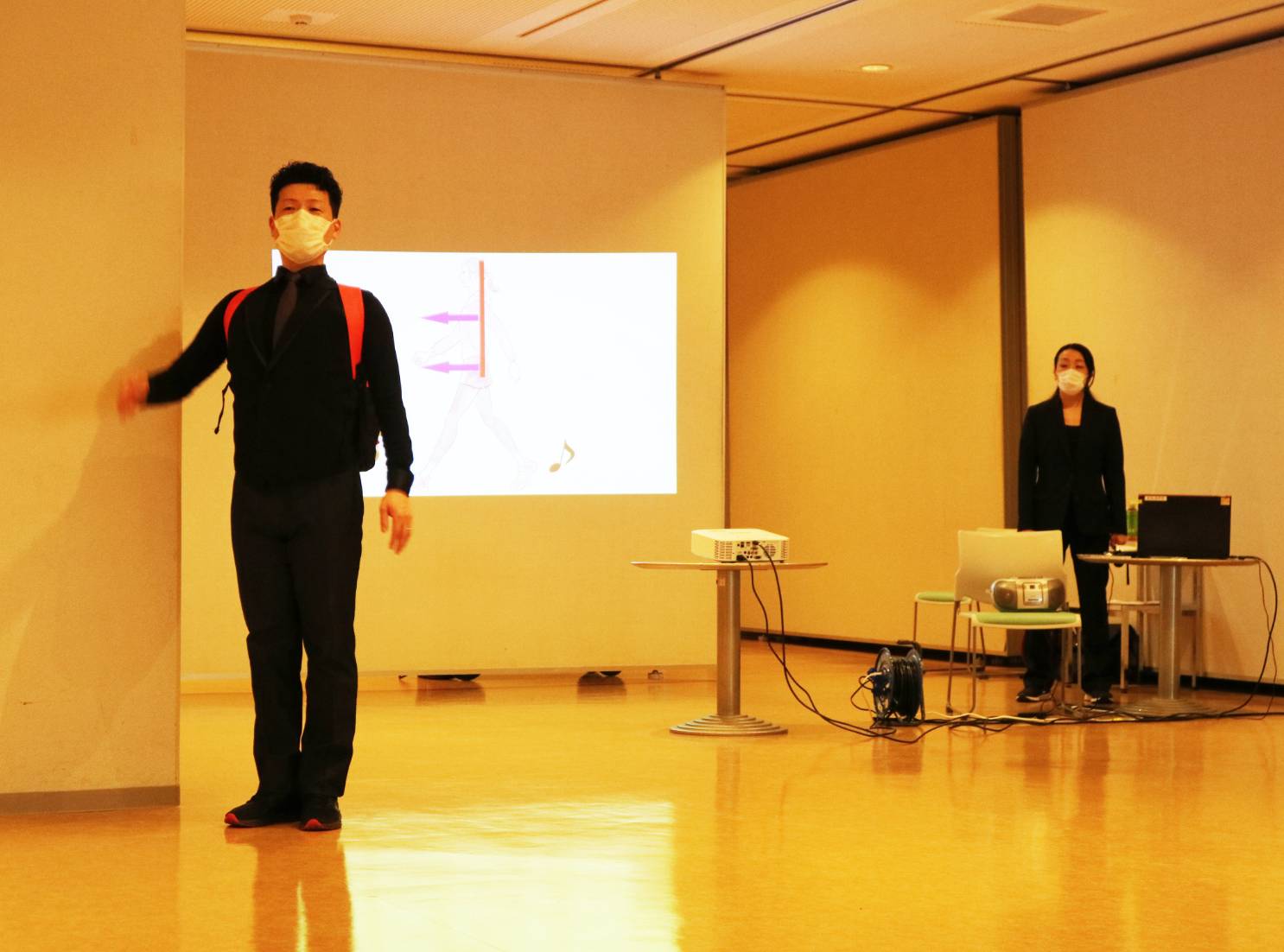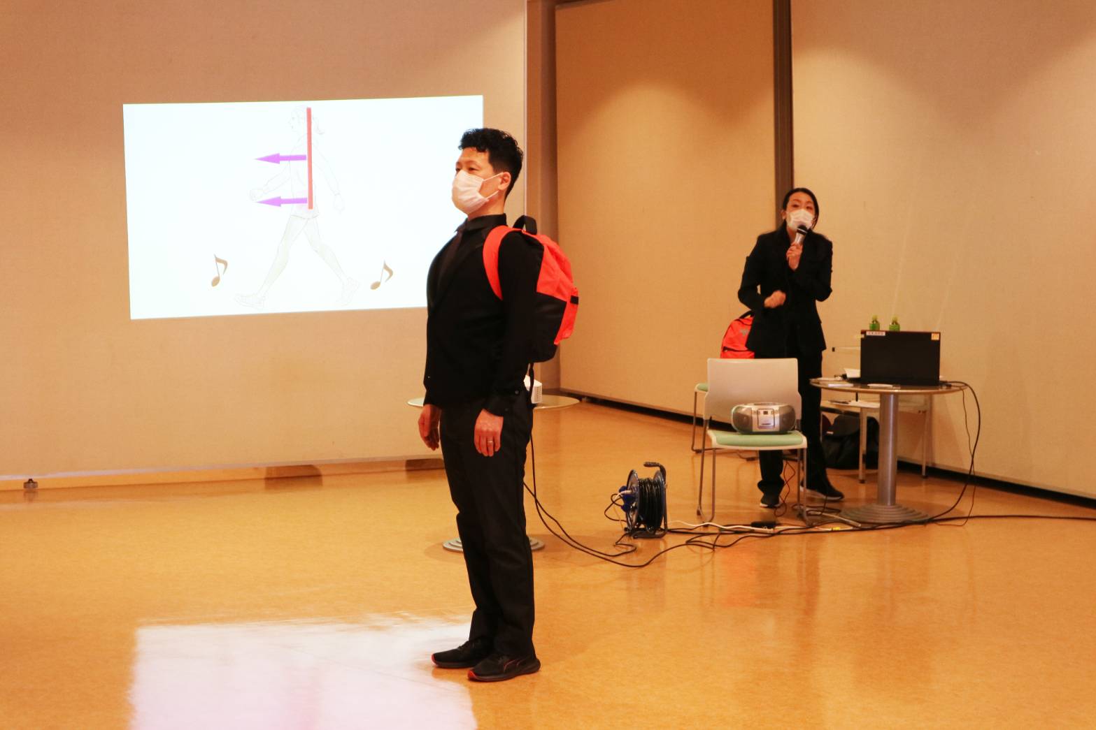 防災ウォーキングは、社交ダンスの要素を活かし、省エネで高速歩行ができるウォーキングです。